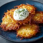 To reheat, preheat the oven to 375°F (190°C), spread the latkes on a baking sheet, and heat for about 10-15 minutes until they’re crispy again. While reheating in the skillet is possible, the oven helps retain the crunchiness better.