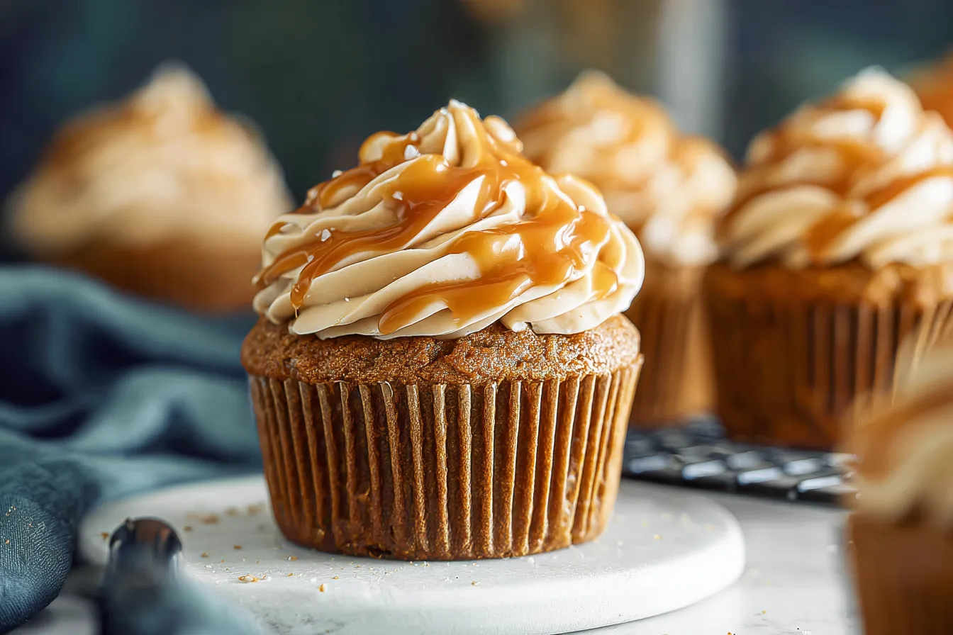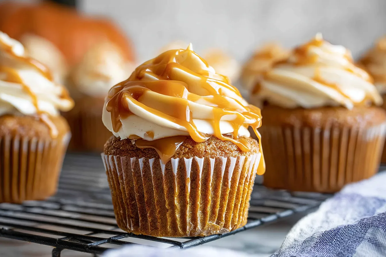 Indulge in decadent pumpkin cupcakes topped with rich salted caramel cream cheese frosting Perfect for any fall celebration or sweet craving