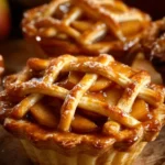 Delicious bite-sized mini pies filled with baked apples, warm spices, and drizzled with salted caramel, perfect for parties and gatherings.