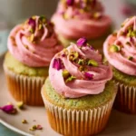 Vegan Rose Pistachio Mini Cupcakes